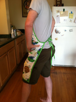 It's a very giant apron, but it ended up fitting him perfectly and he was very, very excited and happy.
